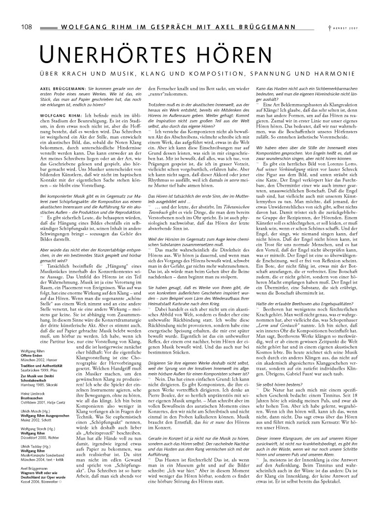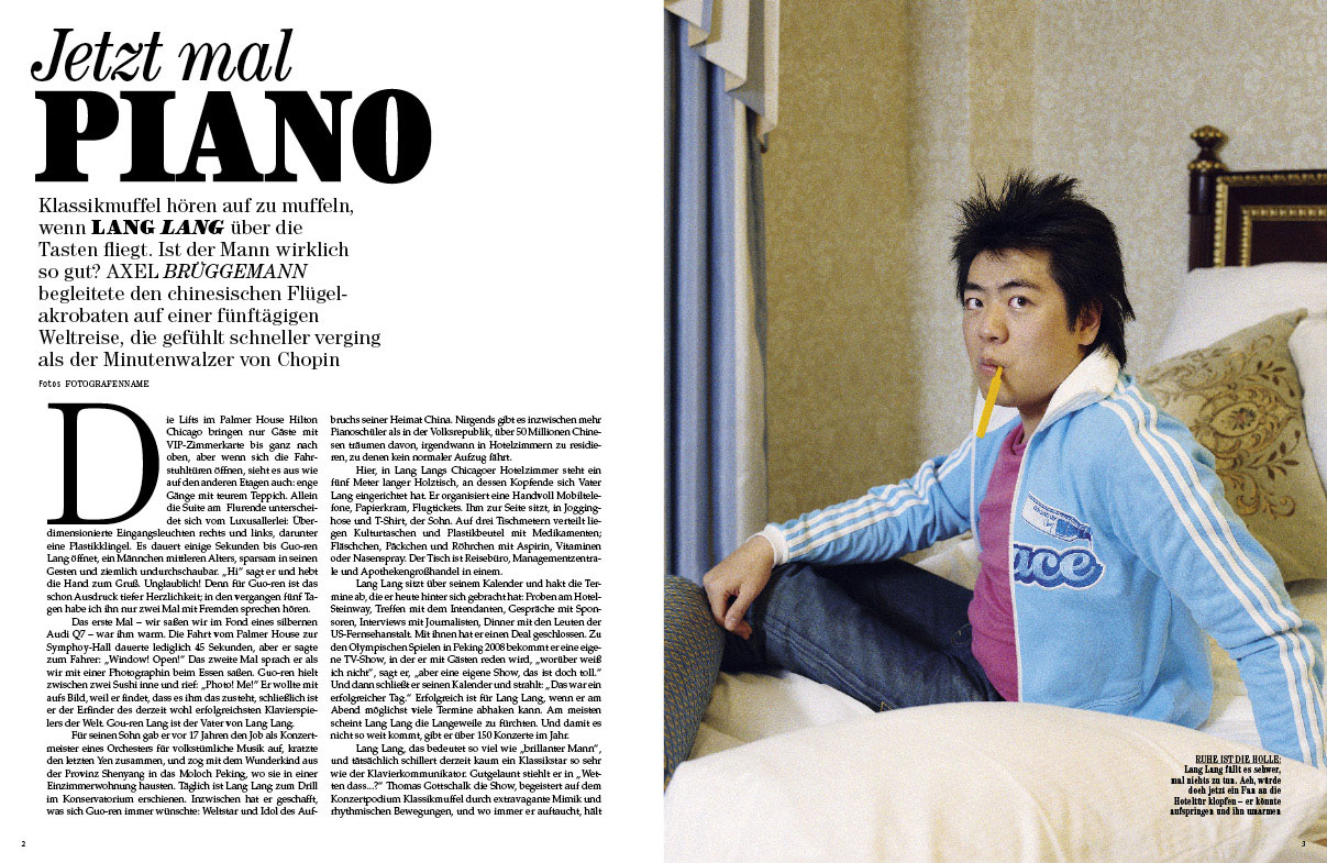 “Im Paradies gibt’s keine Schlangen” - Reportage in der “Welt am Sonntag” zum Tod von Papst Johannes Paul II. (ausgezeichnet mit Springer Nachwuchspreis)”Da geht es doch auch um die Ewigkeit” - Genesis über Klassik und Pop (”FAS”)”After Arafat” Essay von Daniel Barenboim nach einem Gespräch mit Axel Brüggemann (”Herald Tribune”)”Die neuen Diven” (”Stern”)”Wer Mozart hört, spielt besser Fußball” - Giovanni Trapattoni über Mozart (”FAS”)”Les Lecons de Spinoza” - Daniel Barenboim über Nahost (”Nouvel Observateur”)”Jetzt applaudieren die Engel” - Nachruf Luciano Pavarotti (”BILD”)”Die taube Nation” - Reportage für die FAS”Das Elend der Kulturbürgermeister” - Rheinischer Merkur”Cecilia Bartoli: Menschen als Monster” - BamS”Rock ist in Wirklichkeit reaktionär” (Interview mit Sting und Hope für FAS)”Die schönste Oper aller Zeit” (Als Experte auf dem 3Sat-Sofa)”Katharina Wagner über Bayreuth” (Für BamS)”Klassik goes Rock” (Essay “Rheinischer Merkur”)Aktuell“Am Beispiel meines Großvaters” (Der Zweite Weltkrieg und meine Familie - Reportage für die FAS)”"Die Diva als Opernpuppe” (Portrait über Patricia Petibon für Festspiele)”Alles, was Sie über Bayreuth und Salzburg wissen müssen” (BILD)”Wir haben die Kapfzone ausgeweitet” (Peter Gelb über die Oper, FAS)”Der Grüne Hügel trägt schwarz” (Nachruf auf Wolfgang Wagner in BILD)”Gott wird ein Auge zudrücken” - über Margot Käßmann im Freitag”Die Götter in uns” - über Brad Pitt und Angelina Jolie (Freitag)”Verliebt in den Tod - Antonio Pappano” (Rheinischer Merkur)”Die Einsamkeit des Profis” (Der Freitag)”Zemlinsky-Premiere in Bremen” (Nordwestradio)”Kulturen der Empathie- Buchkritik” (Freitag)”Na, auch schon wach?” (FAS)”Gesichter des Widerstands - die neue Opposition” (Freitag)”Henze versus Heintje” (Rheinischer Merkur”)”Madonna wird vergessen sein” - Interview mir Ian Bostridge (Merkur)”Der Fliegende Holländer für Kinder” Reportage für dradio.de”DieWagner-Frauen” (WELTWOCHE)”Die Leichtdenker - das Ende der Philosophie?” - Essay für den Rheinischen Merkur”Katharina Wagner - dieOpern-Nanny” Interview für BILD am SONNTAG”ver.di gegen Wagner” für die Frankfurter Rundschau”Brauchen wir einen Aufstand?” Essay für den Freitag”Play” - Bildende Kunst und Bühne für das Sleek-Magazine”Kein Anschiss unter dieser Nummer” - Die Telekom und ich (Freitag)”Dirigentendämmerung” für den Rheinischen Merkur”Das Ende einer großen Liebe” - meine Automobilgeschiche im Freitag”Das große Abwarten” - 10 Mosaike aus dem Stillstand in der Krise (FAS)”Kann dieser Mann noch regieren?” - Debatte über Dieter Althaus im Freitag”Demokratie zusammen wagen” - Essay für den Rheinischen Merkur”Die zeitlose Diva” - über René Fleming (Rheinischer Merkur)”Welche Bücher Sie lesen sollten” Tipps von der Frankfurter Buchmesse (BILD)”Wenn Nachrichten Amok laufen” - Kommentar zum Amoklauf (der Freitag)“Sparhannes wird Küchenmeister” - Wirtschaftskise und Gastronomie (FAS)”So klingt die Krise“- Über das Kultursponsoring in Zeiten der Not (Rheinischer Merkur)